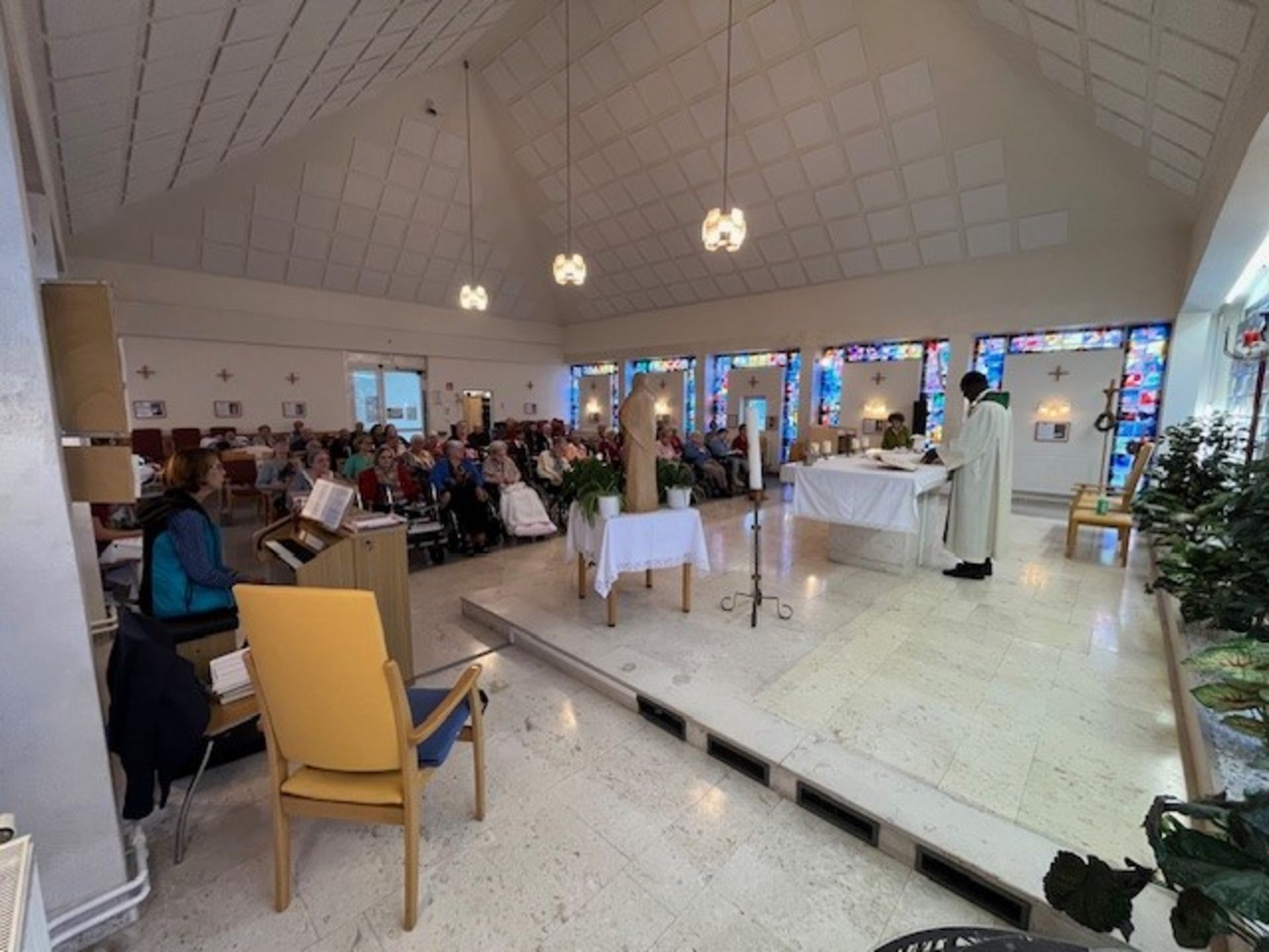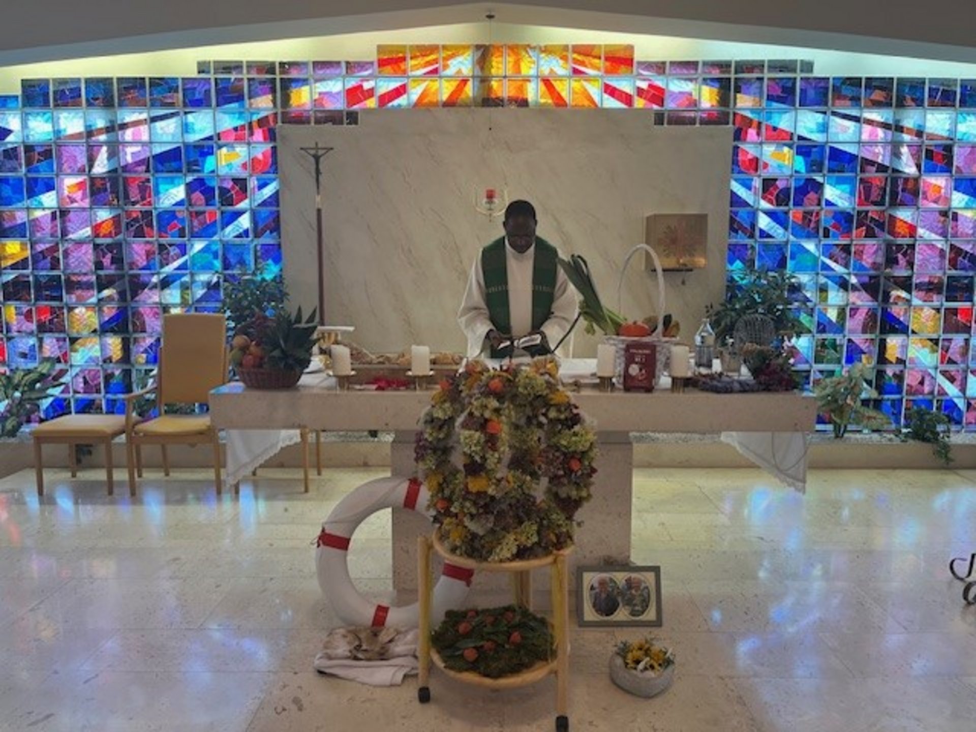 Dafür wird der Altar mit Erntegaben geschmückt, Lebensmittel gesegnet und Gaben für Menschen in Not gesammelt.