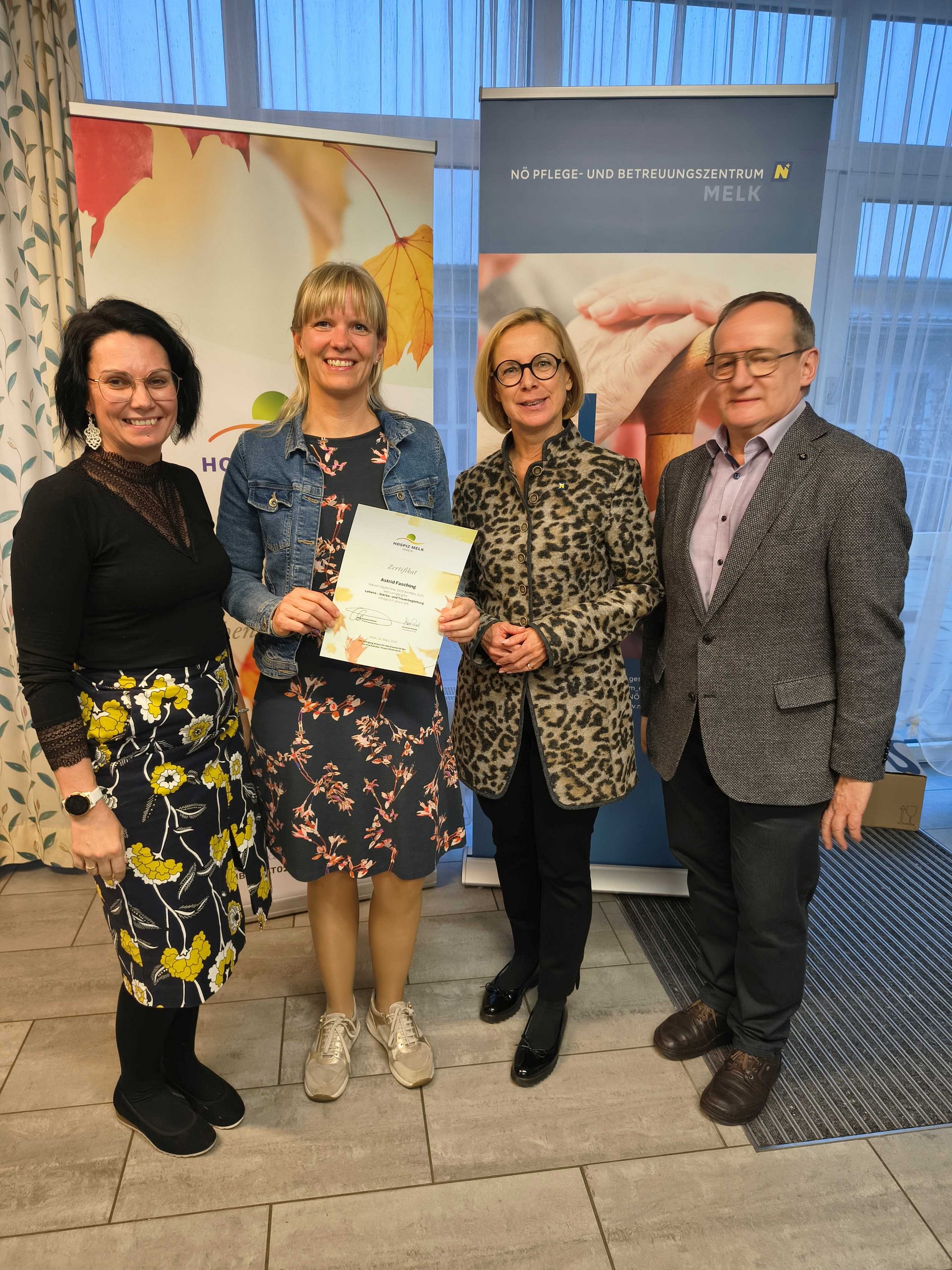 Im Pflege- und Betreuungszentrum Melk fand kürzlich die feierliche Zertifikatsverleihung zum Lehrgang für Lebens-, Sterbe- und Trauerbegleitung des Verein Hospiz Melk statt.